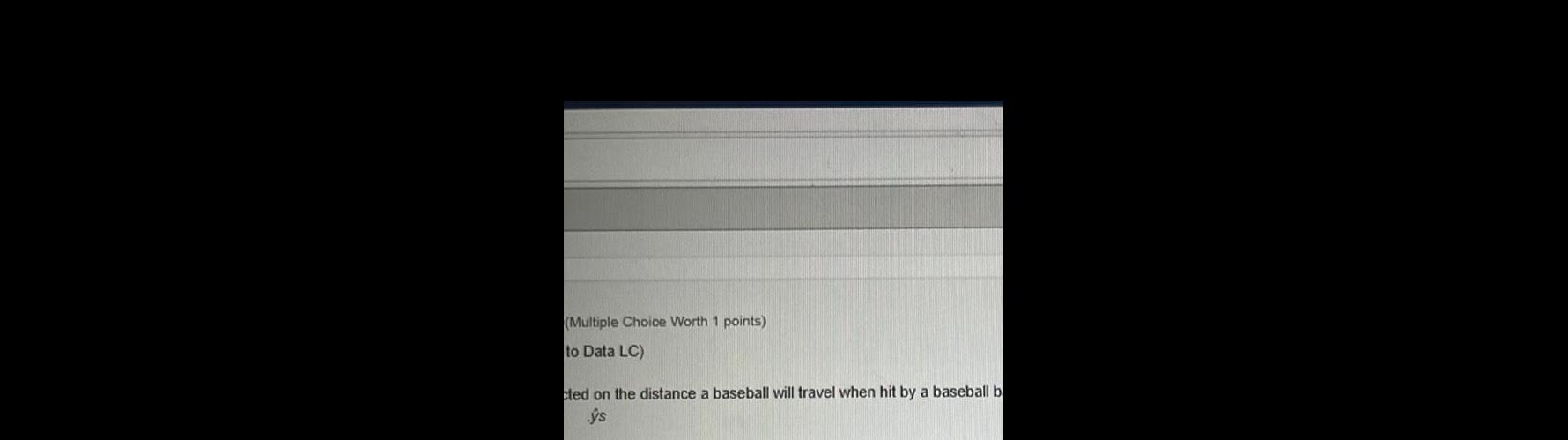 StatisticsMultiple Choice Worth 1 points to Data LC cted on the distance a baseball will travel when hit by a baseball b s